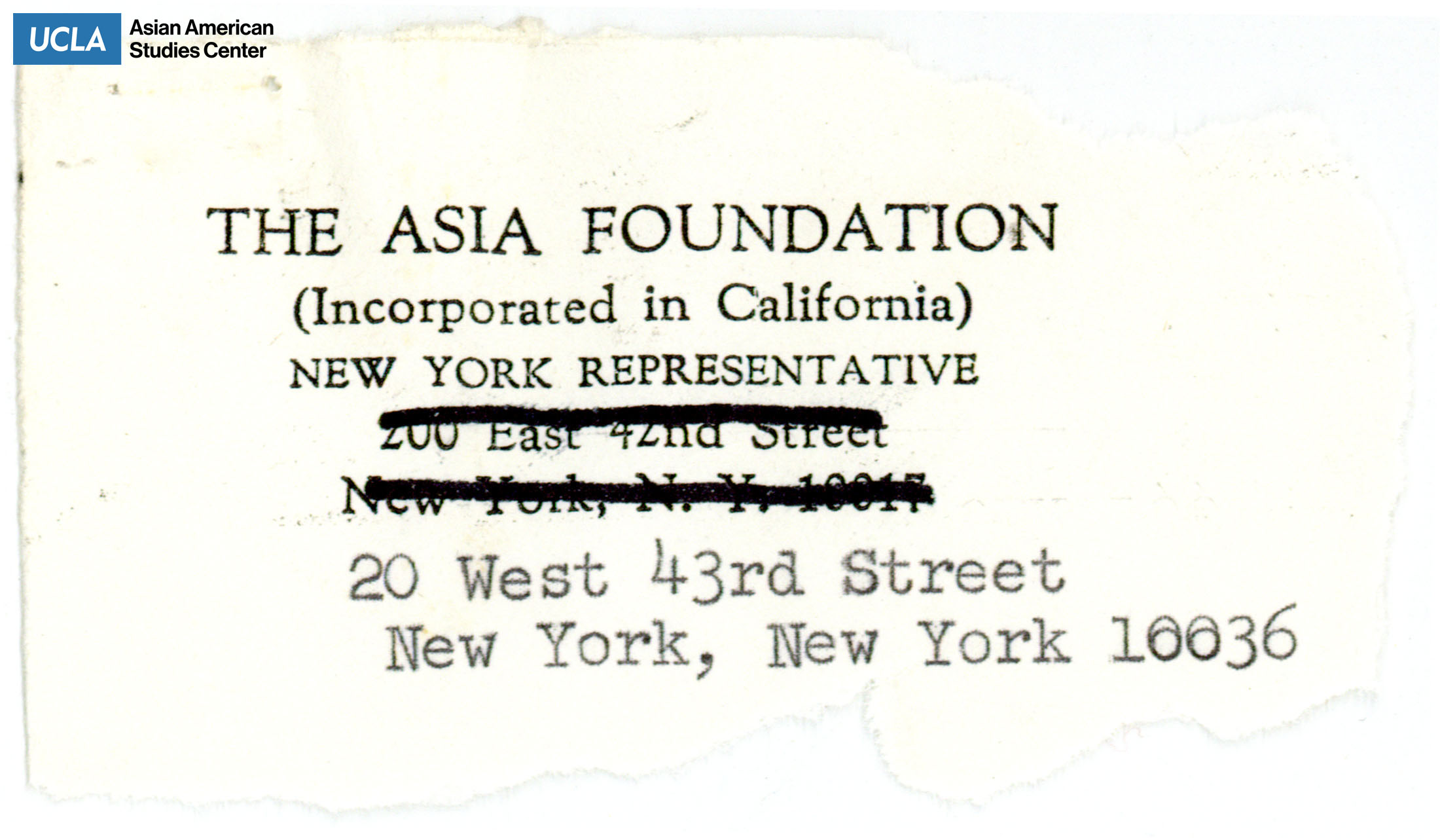 Text includes: "The Asia Foundation (Incorporated in California) New York Representative".