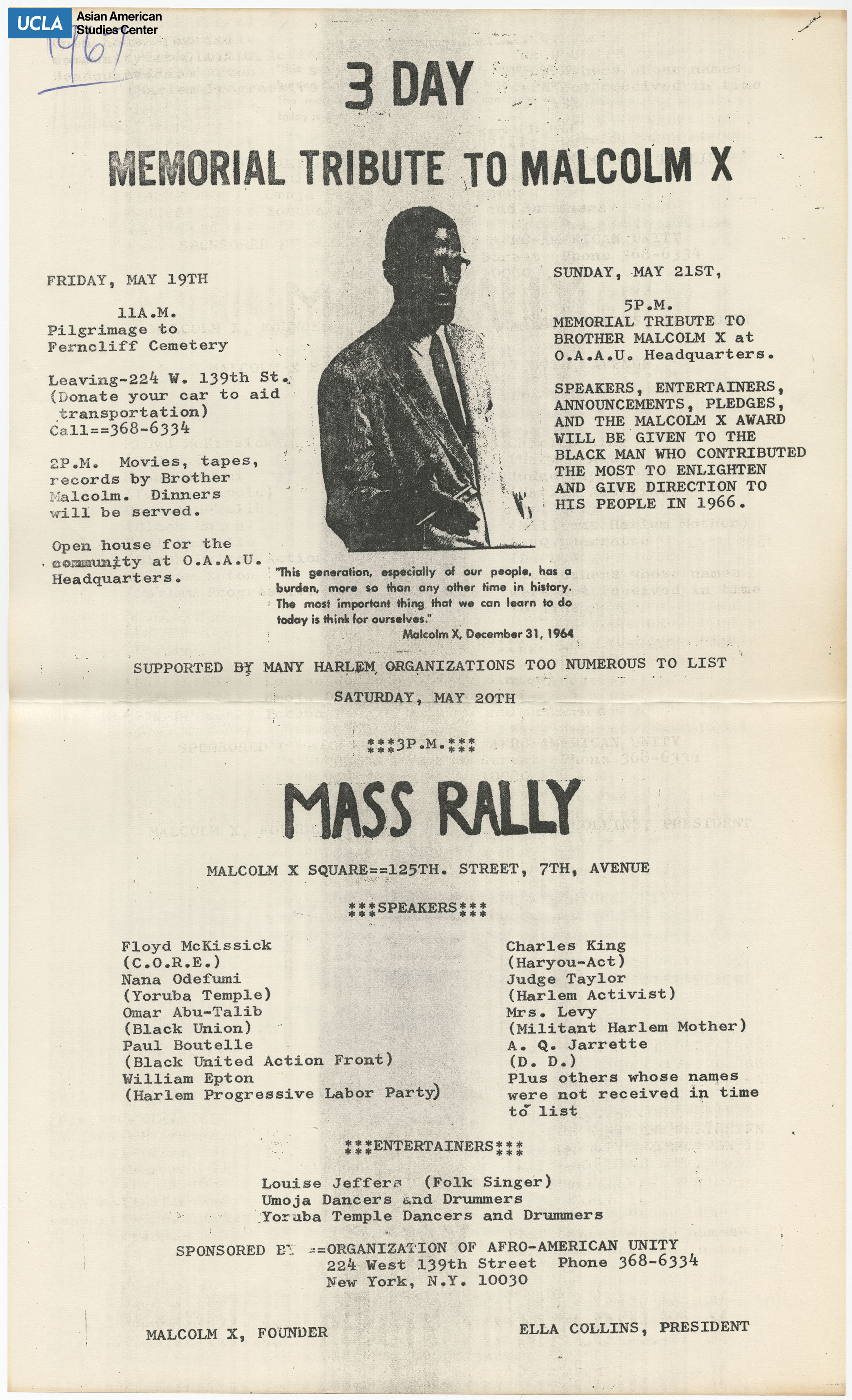 Flyer Regarding Pilgrimage on Malcolm X’s Birthday, May 19, 1965, Version 2