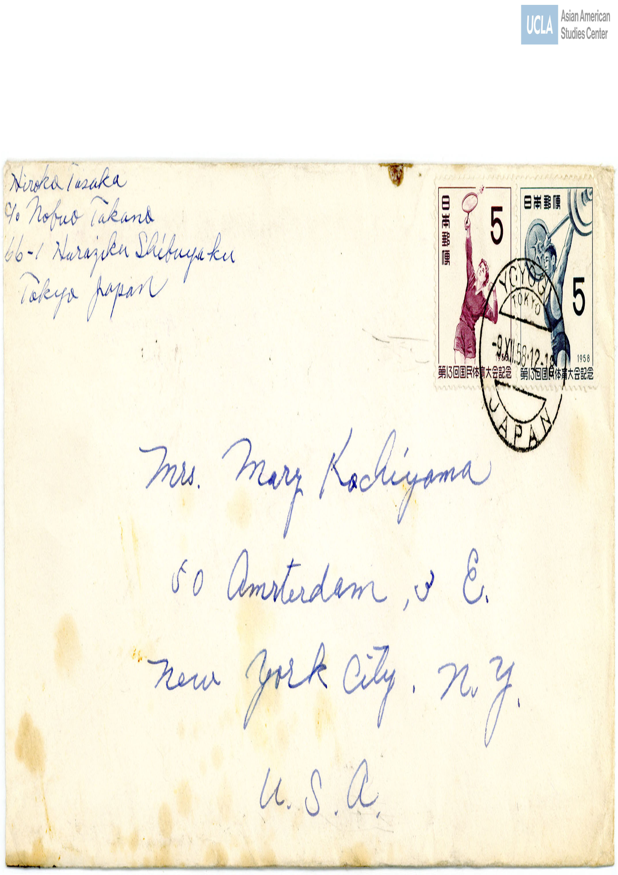 Envelope Addressed to Yuri from Hiroko Tasaka, December 18, 1958