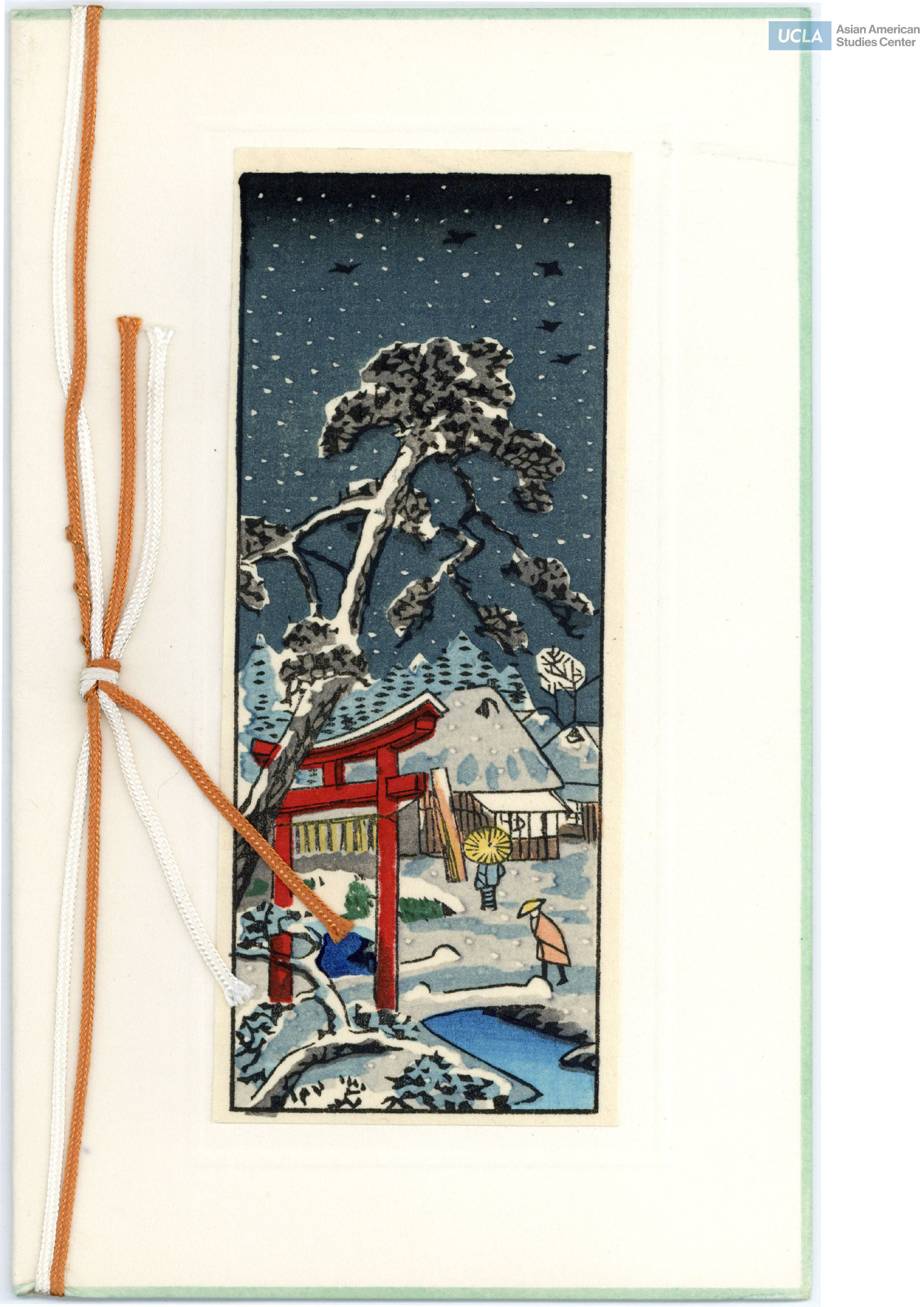 Christmas card from Yasuaki Astuko. Cover of card inclues woodblock print of snowy night with black and white photograph of ...