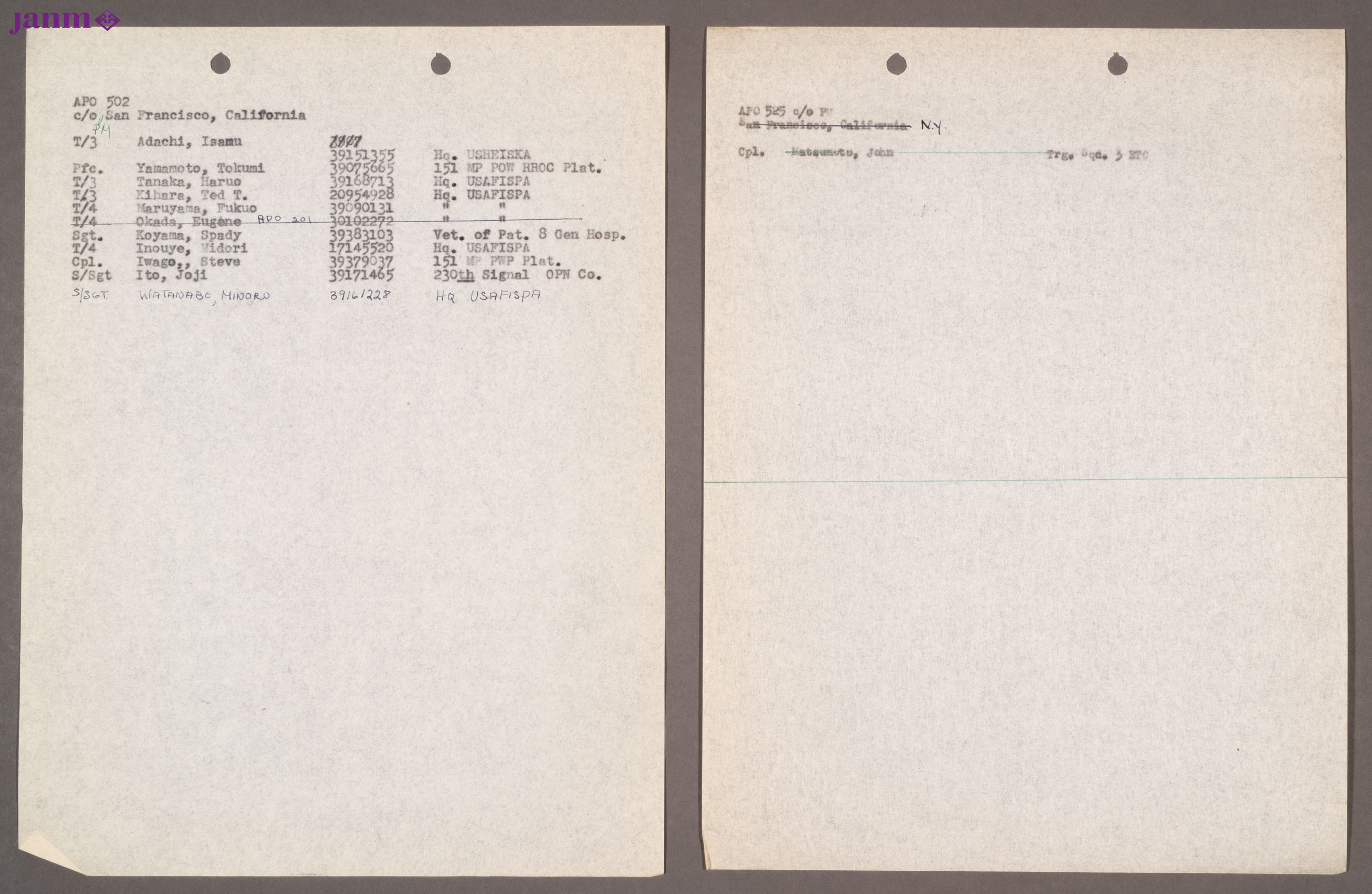 Mailing List Regarding APO San Francisco, Part 21